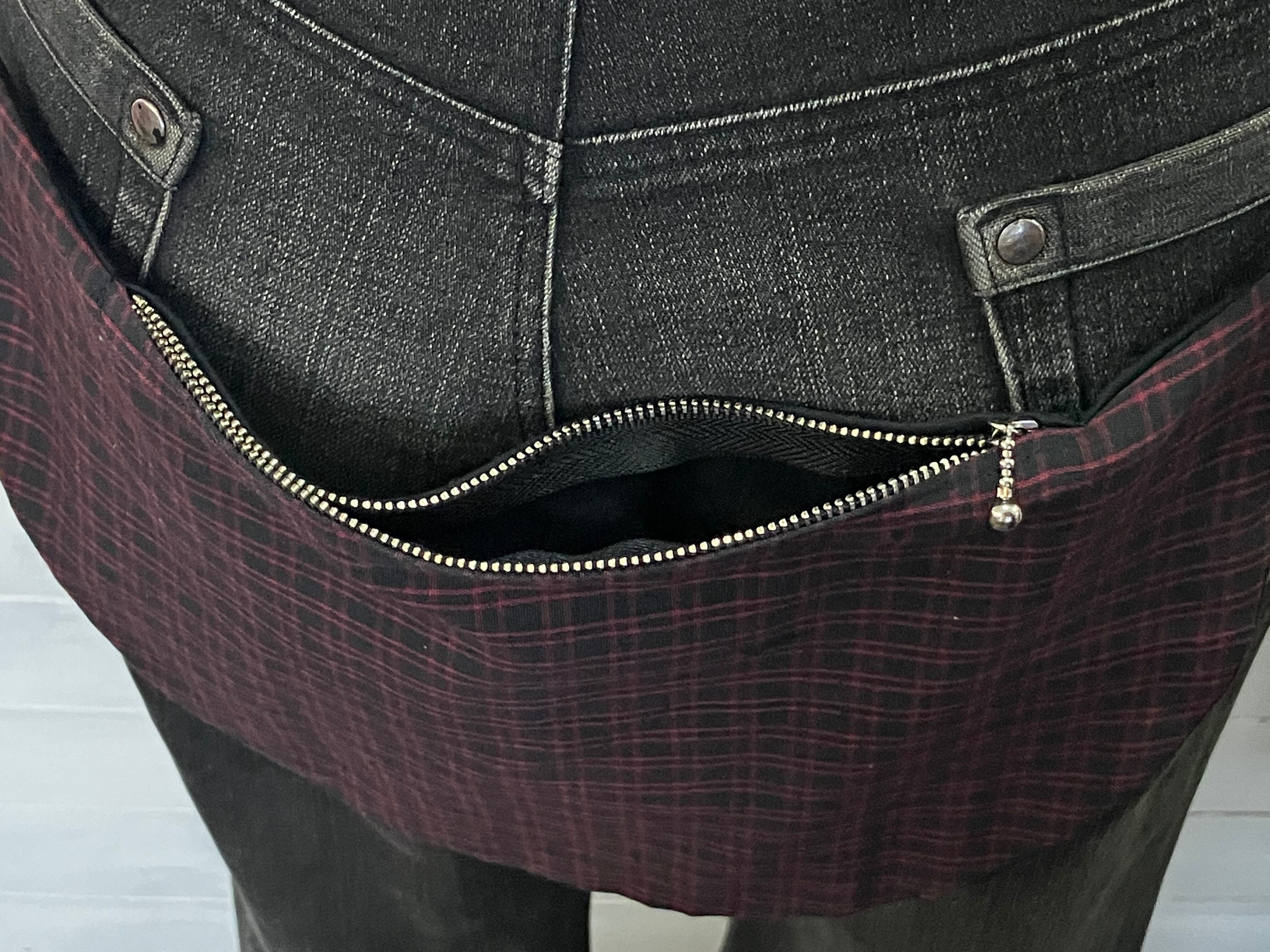 バムフラップ 赤黒細チェック けつあて しり当てヒップバッグ バムフラップ