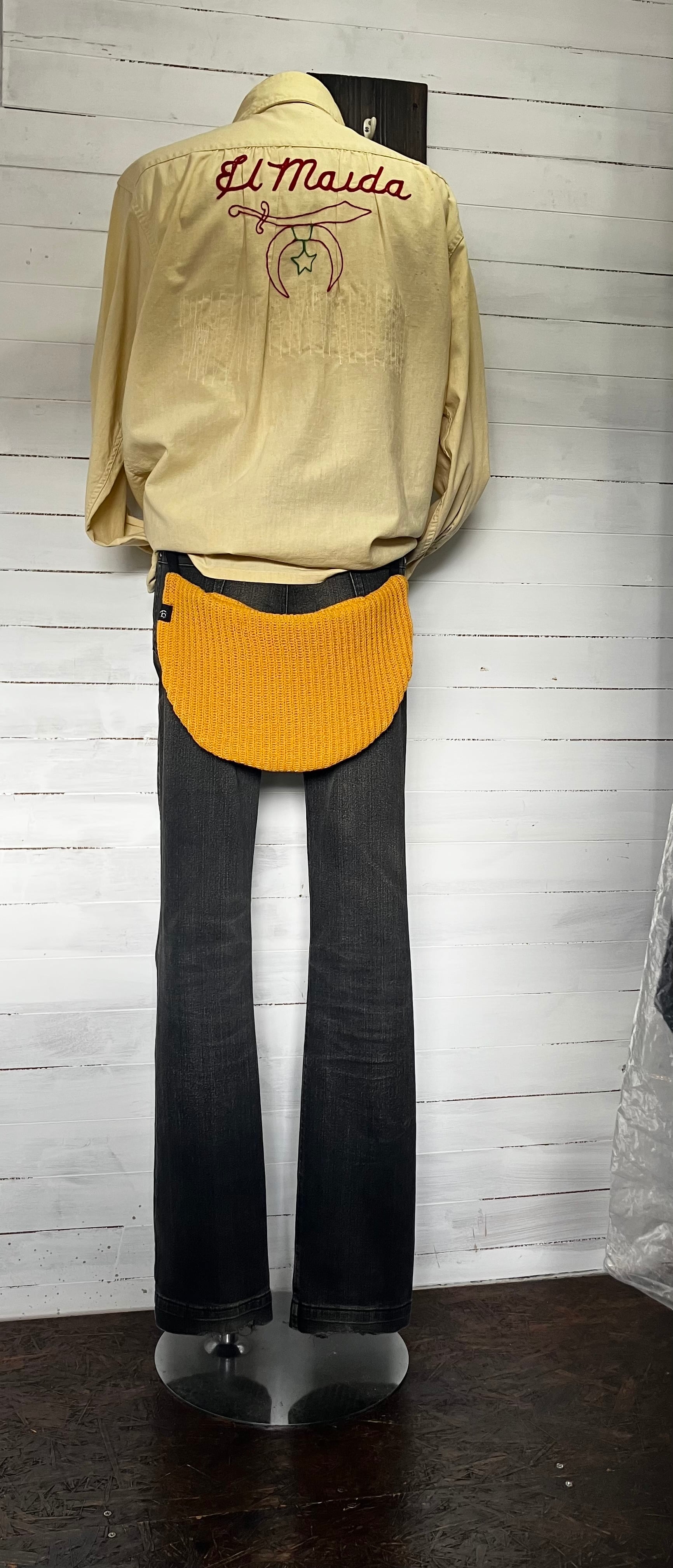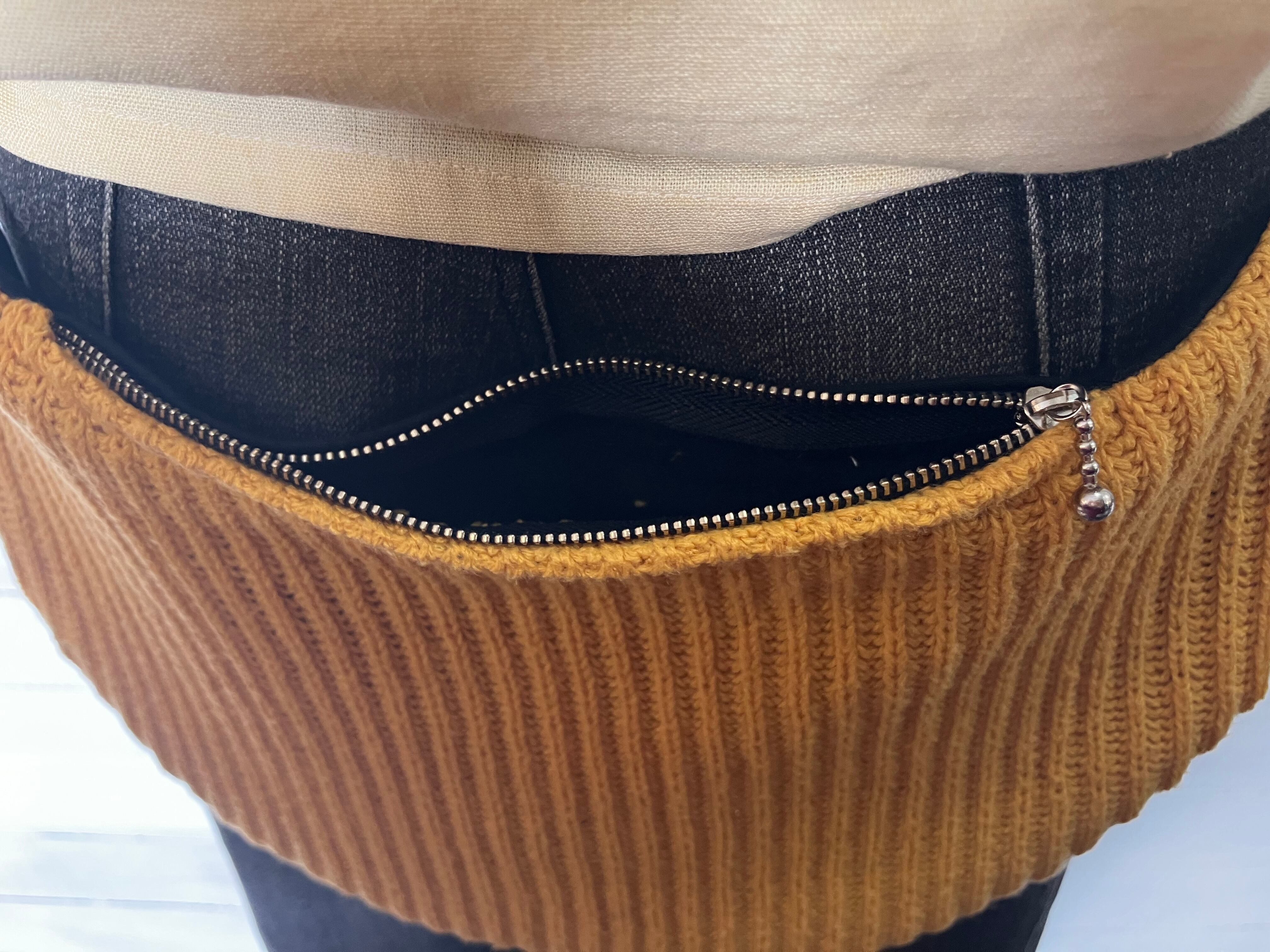 ニット 黄 けつあて しり当てヒップバッグ バムフラップ
