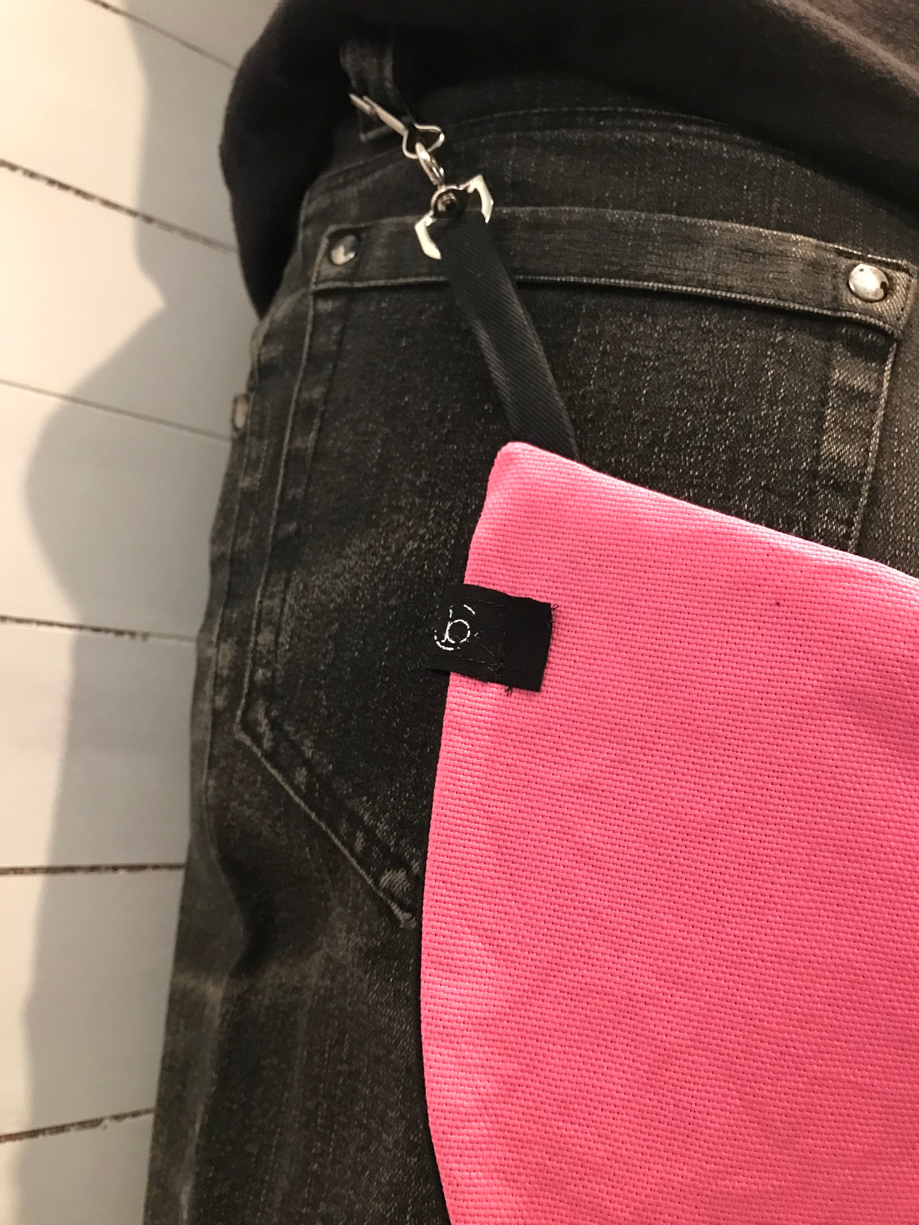 ベルトループに金具でつけるのでサイドに持ってくることも可能です。