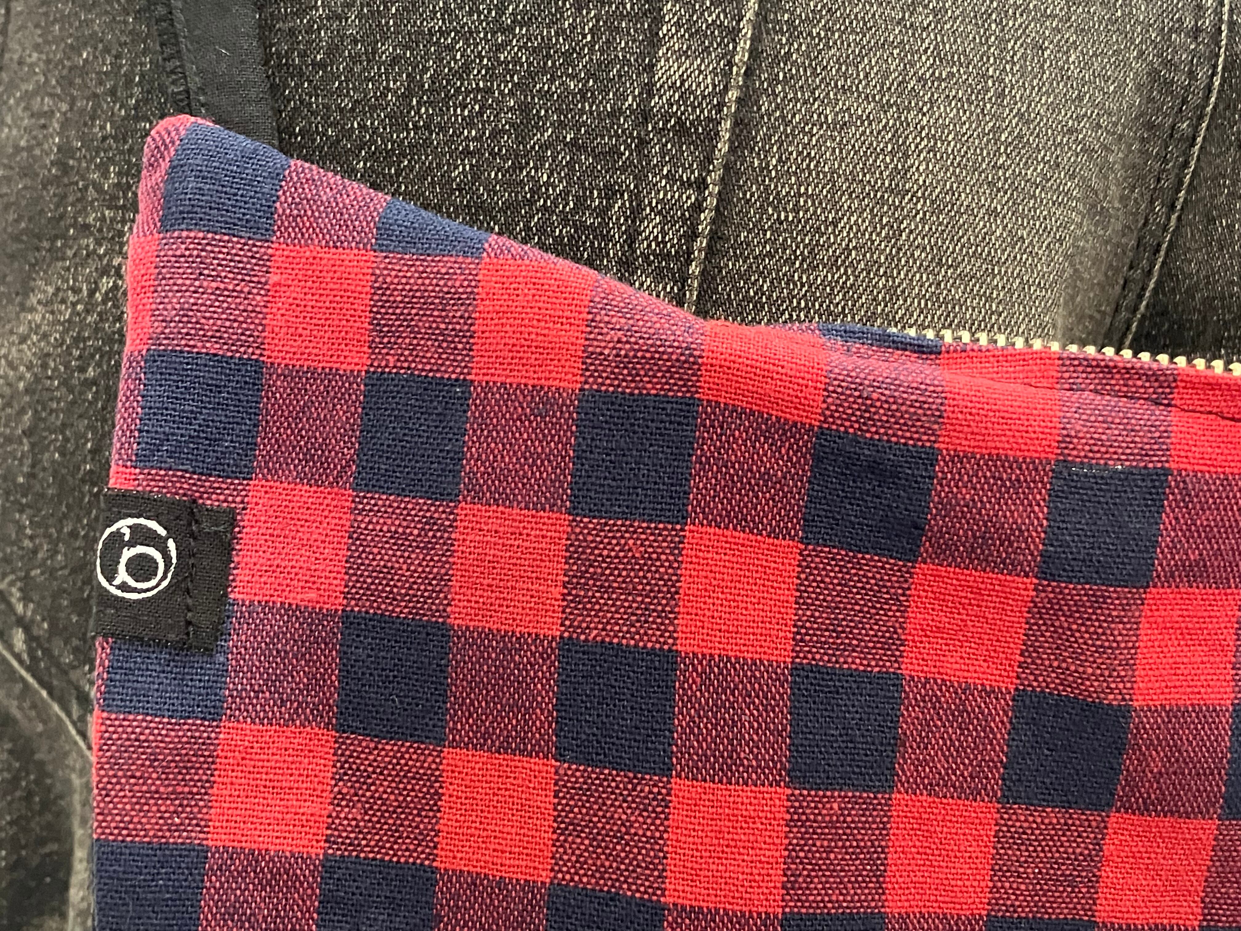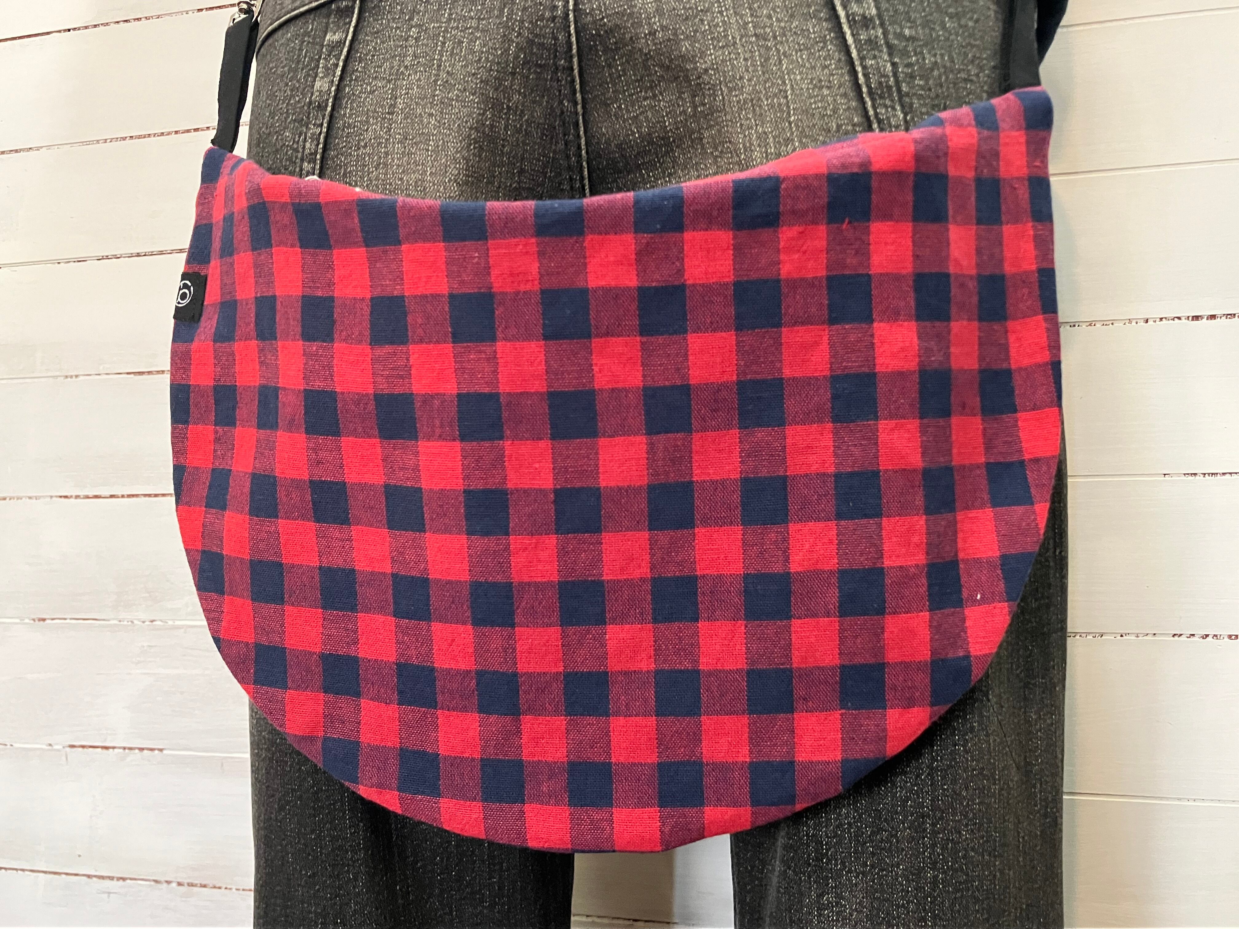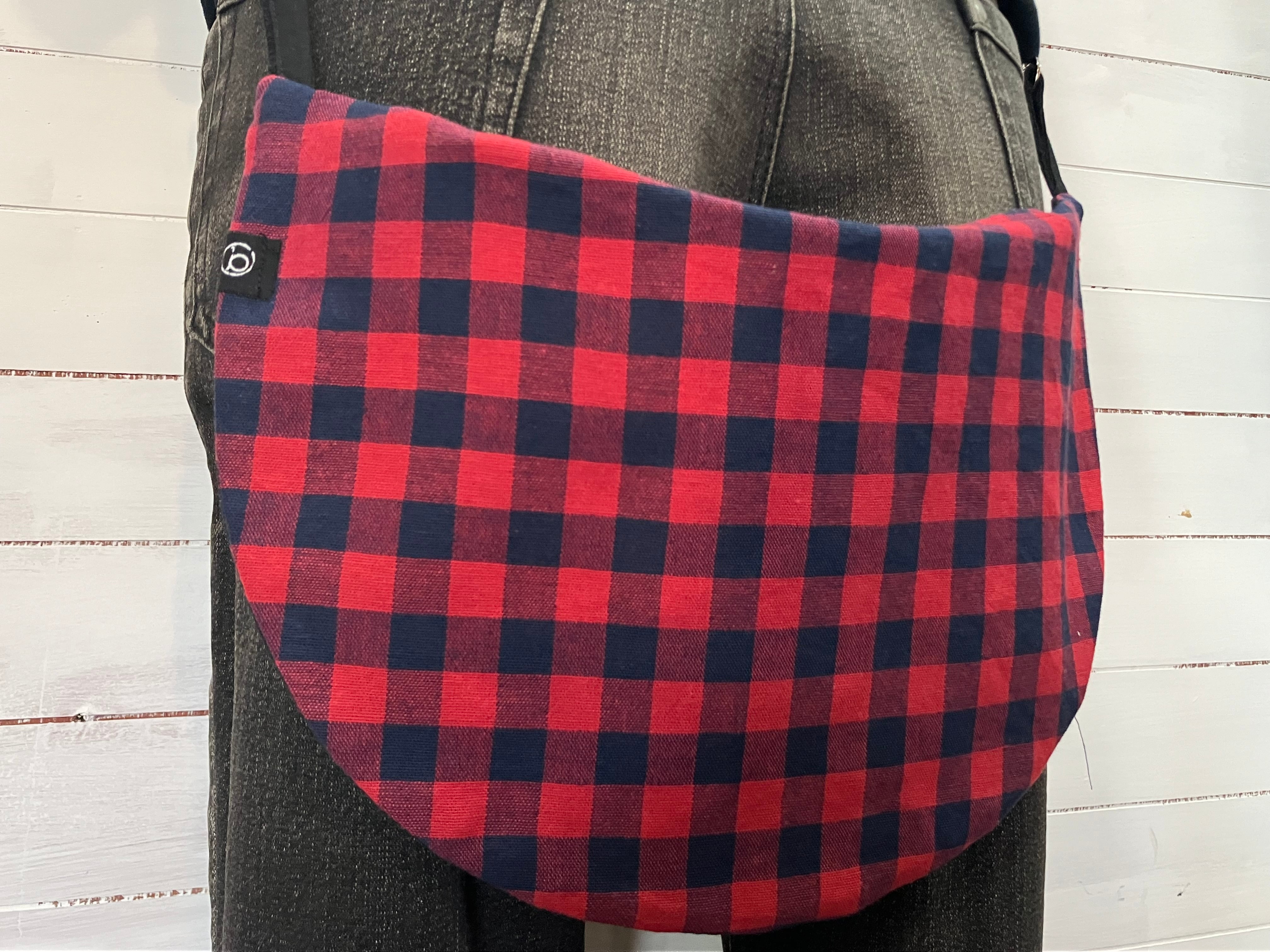 バムフラップ 紺赤チェック けつあて しり当てヒップバッグ バムフラップ