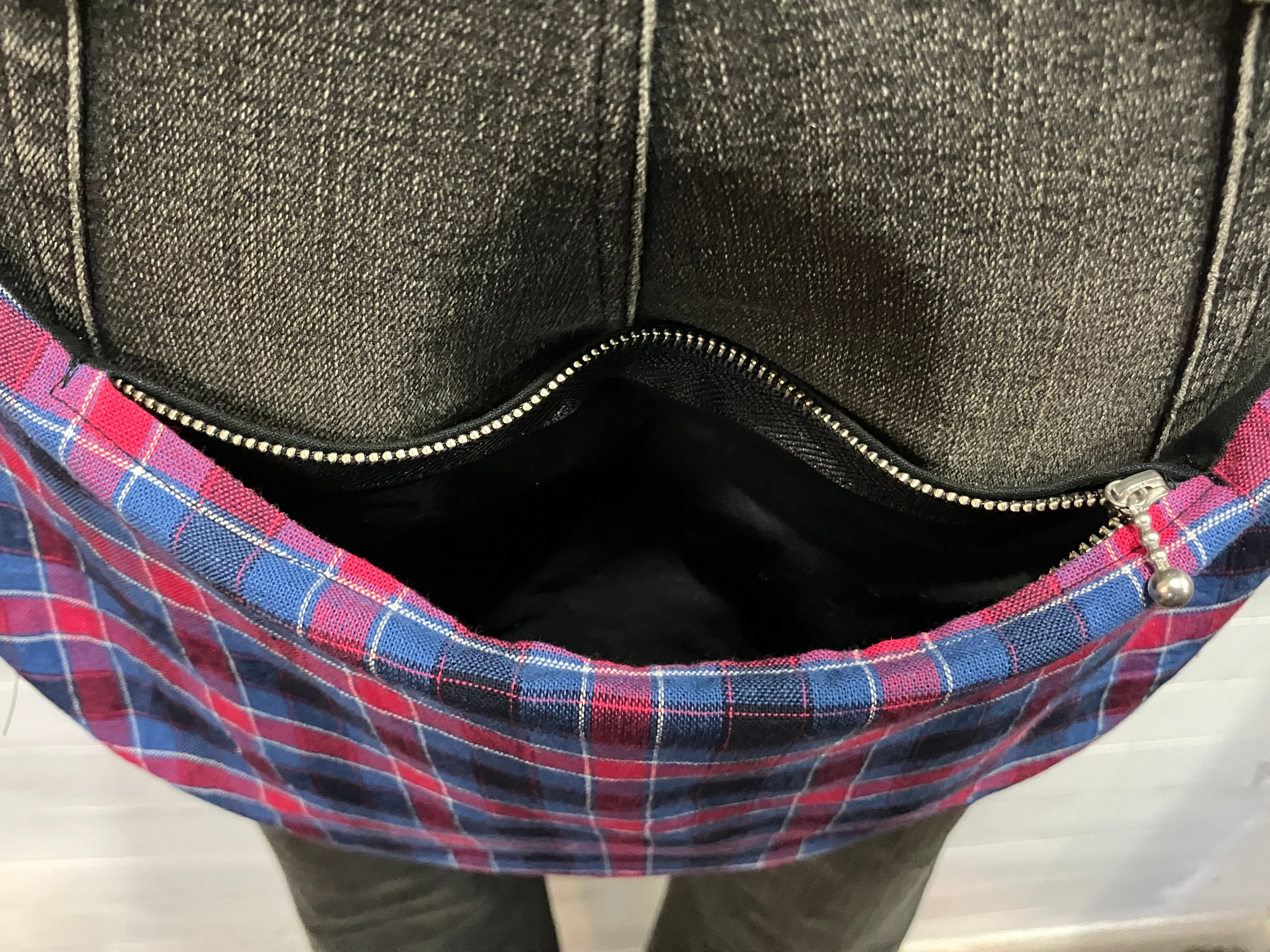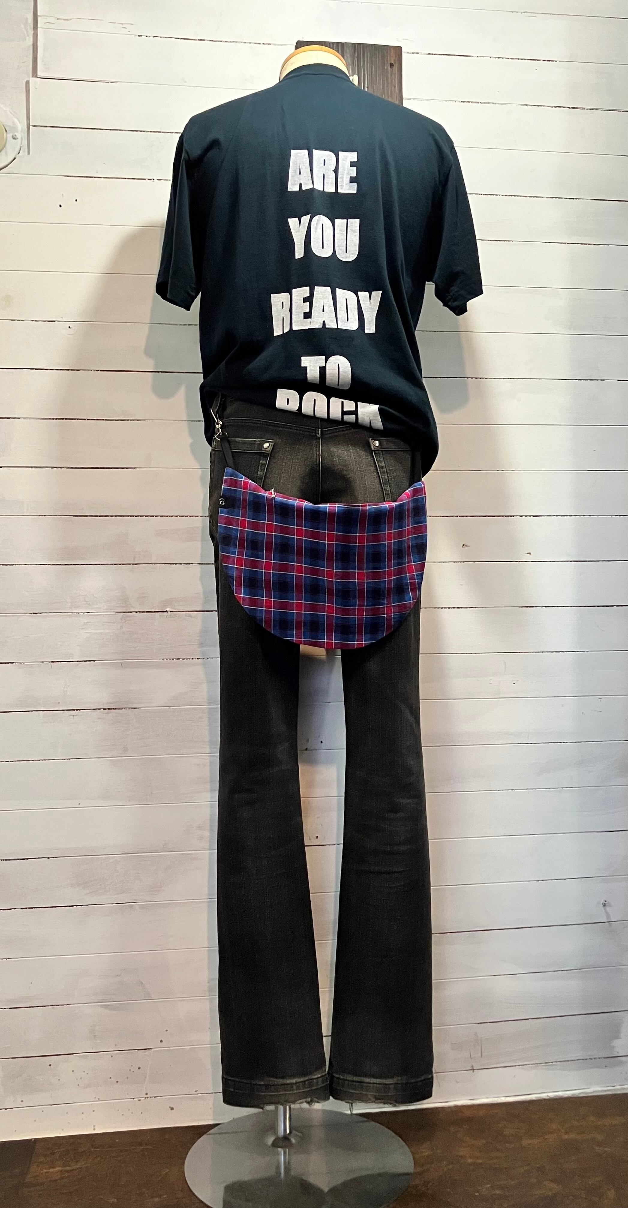バムフラップ 赤青チェック けつあて しり当てヒップバッグ バムフラップ