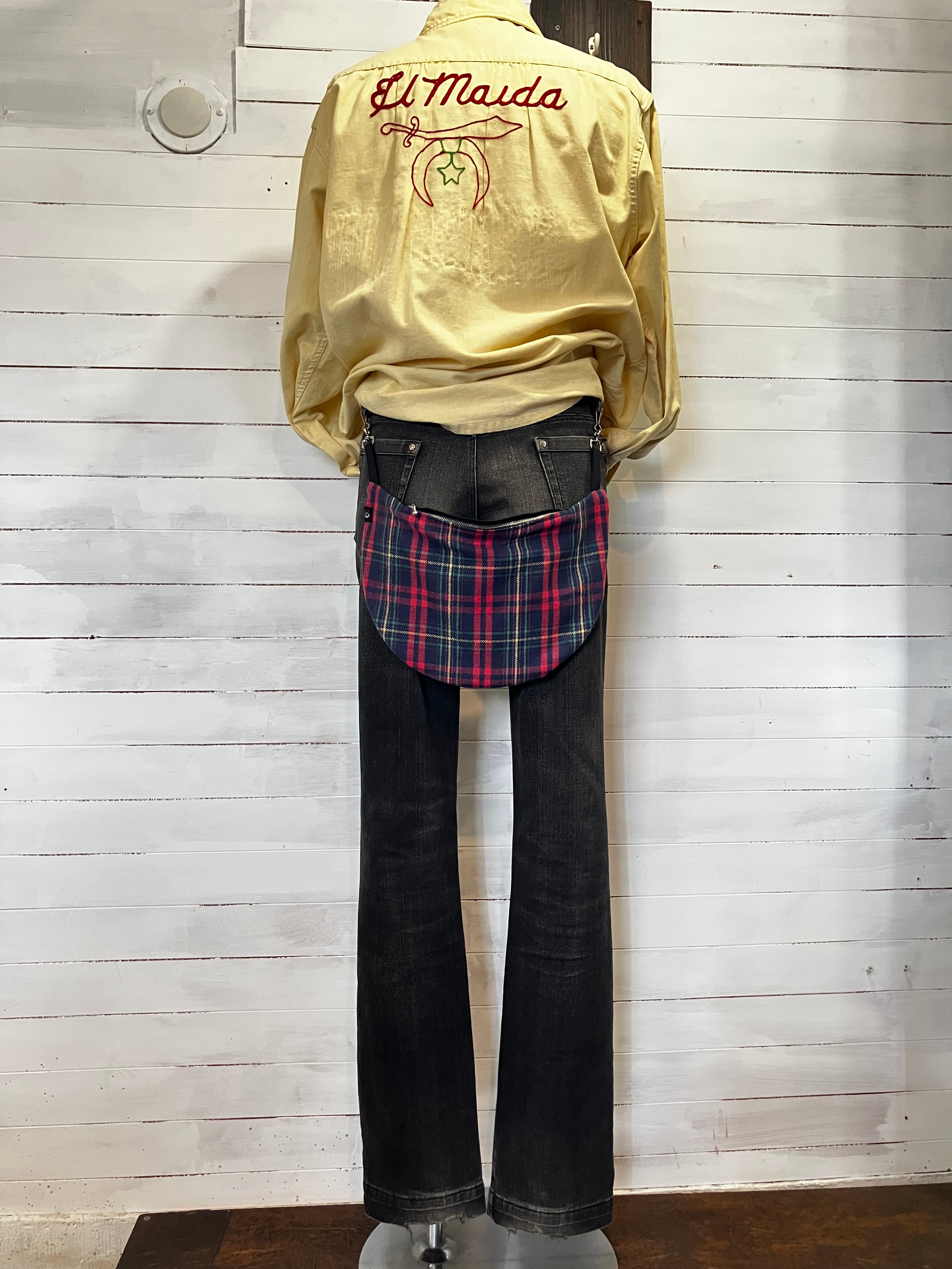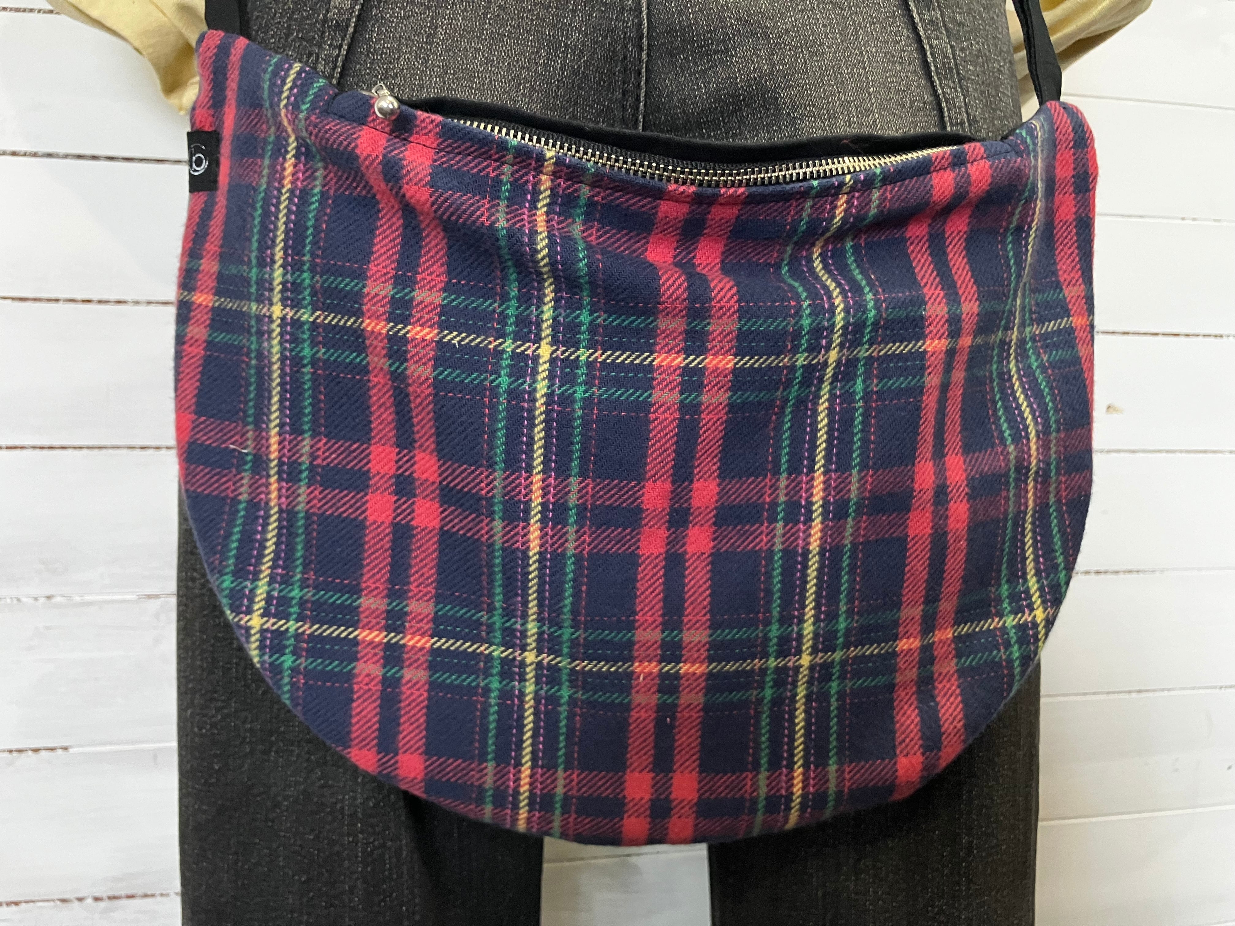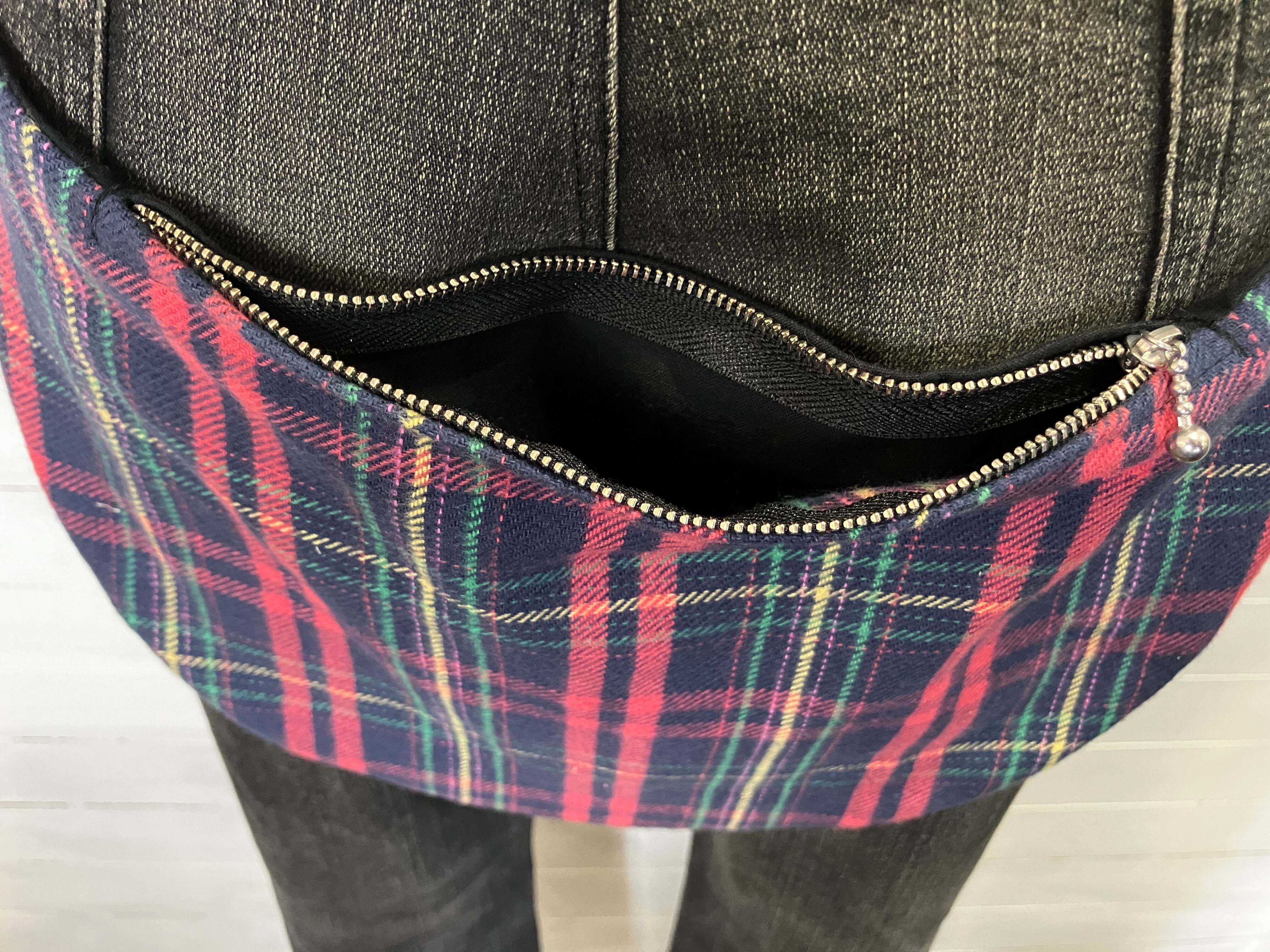 バムフラップ 紺ピンクチェック けつあて しり当てヒップバッグ バムフラップ
