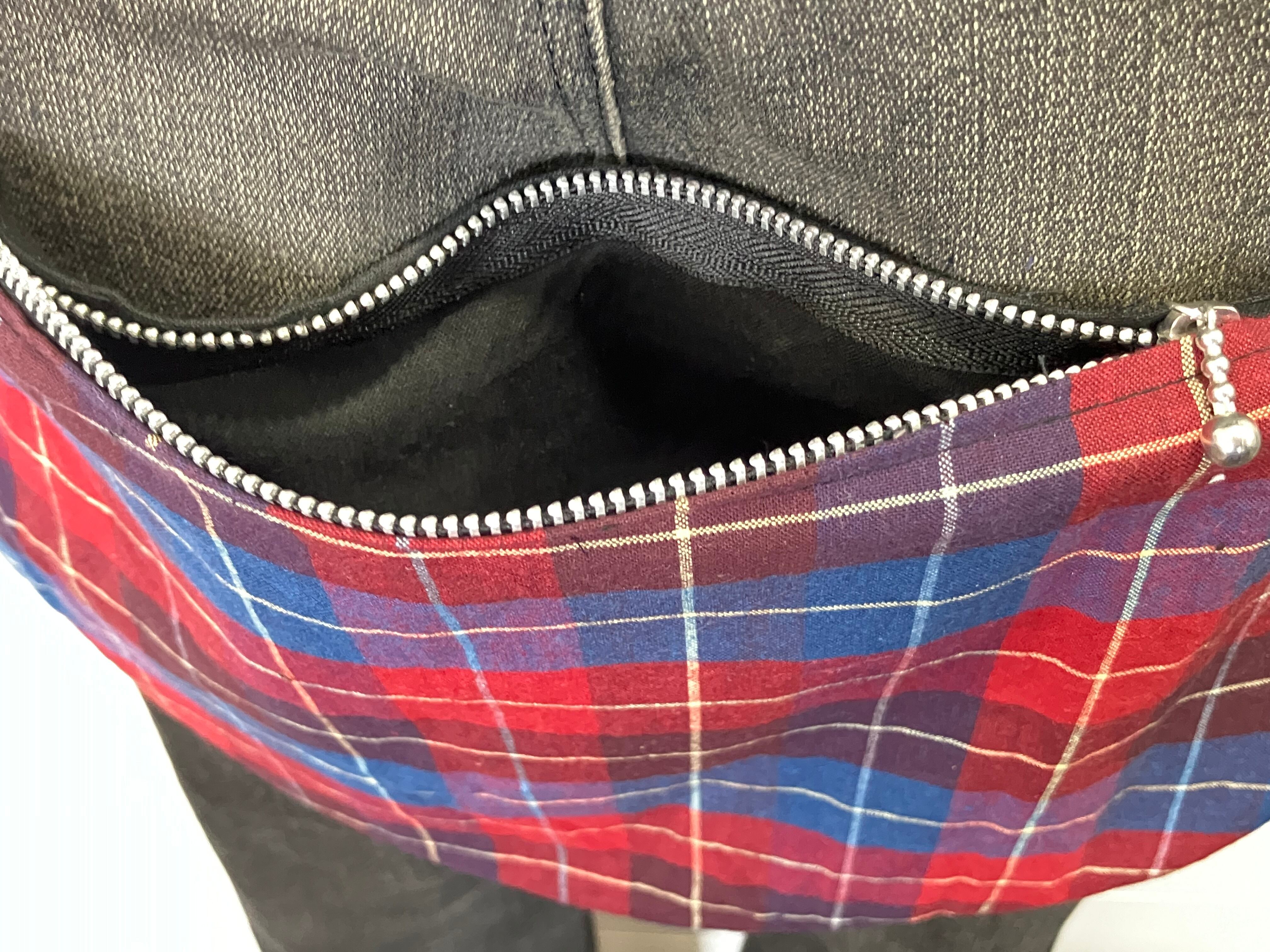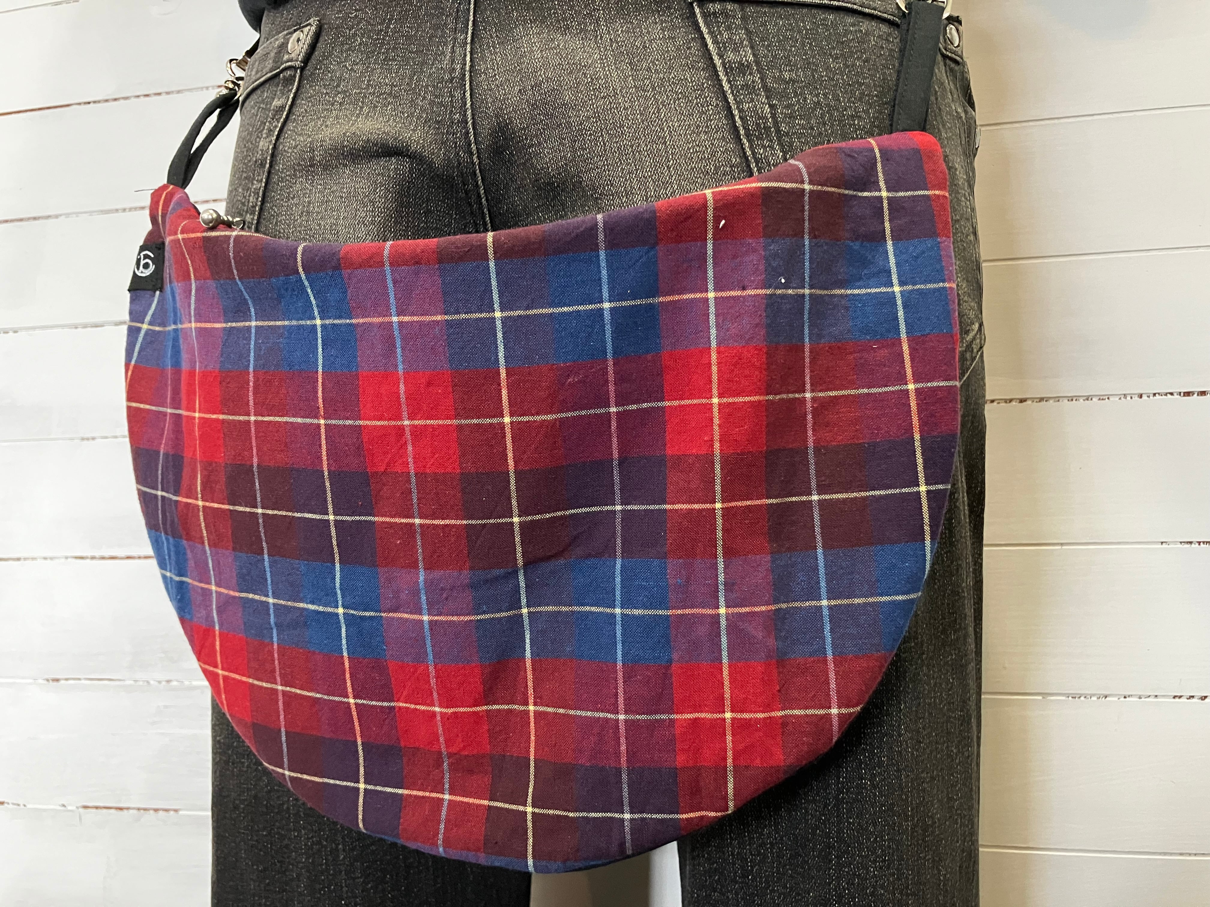 バムフラップ 赤青チェック けつあて しり当てヒップバッグ バムフラップ