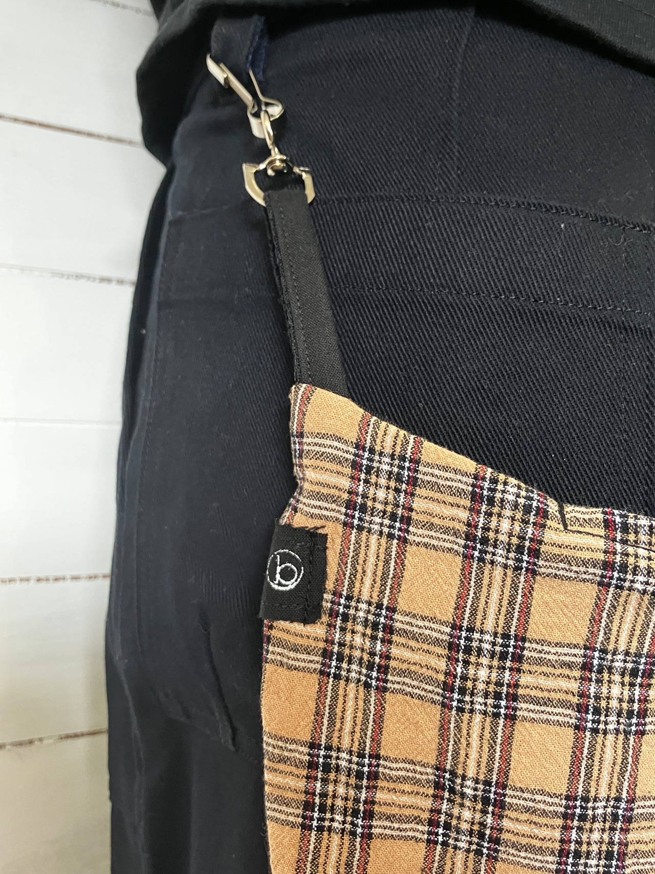 バムフラップ ベージュチェック けつあて しり当てヒップバッグ バムフラップ