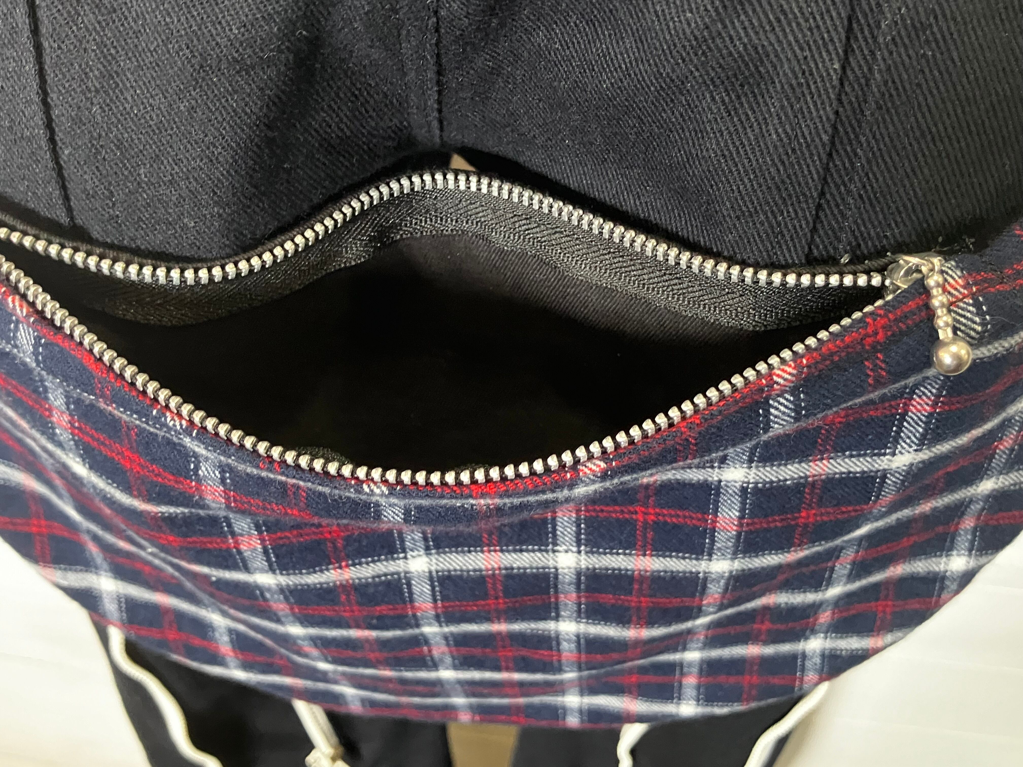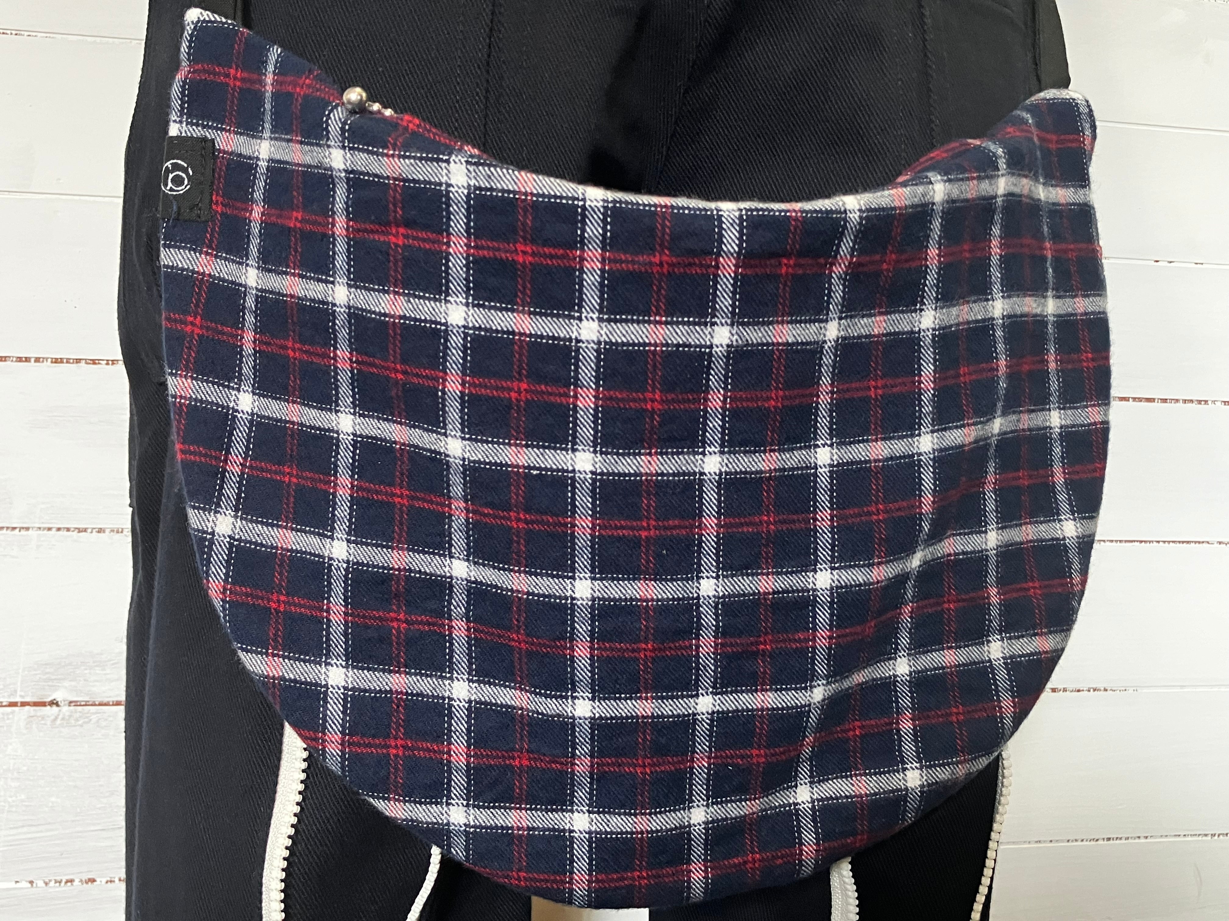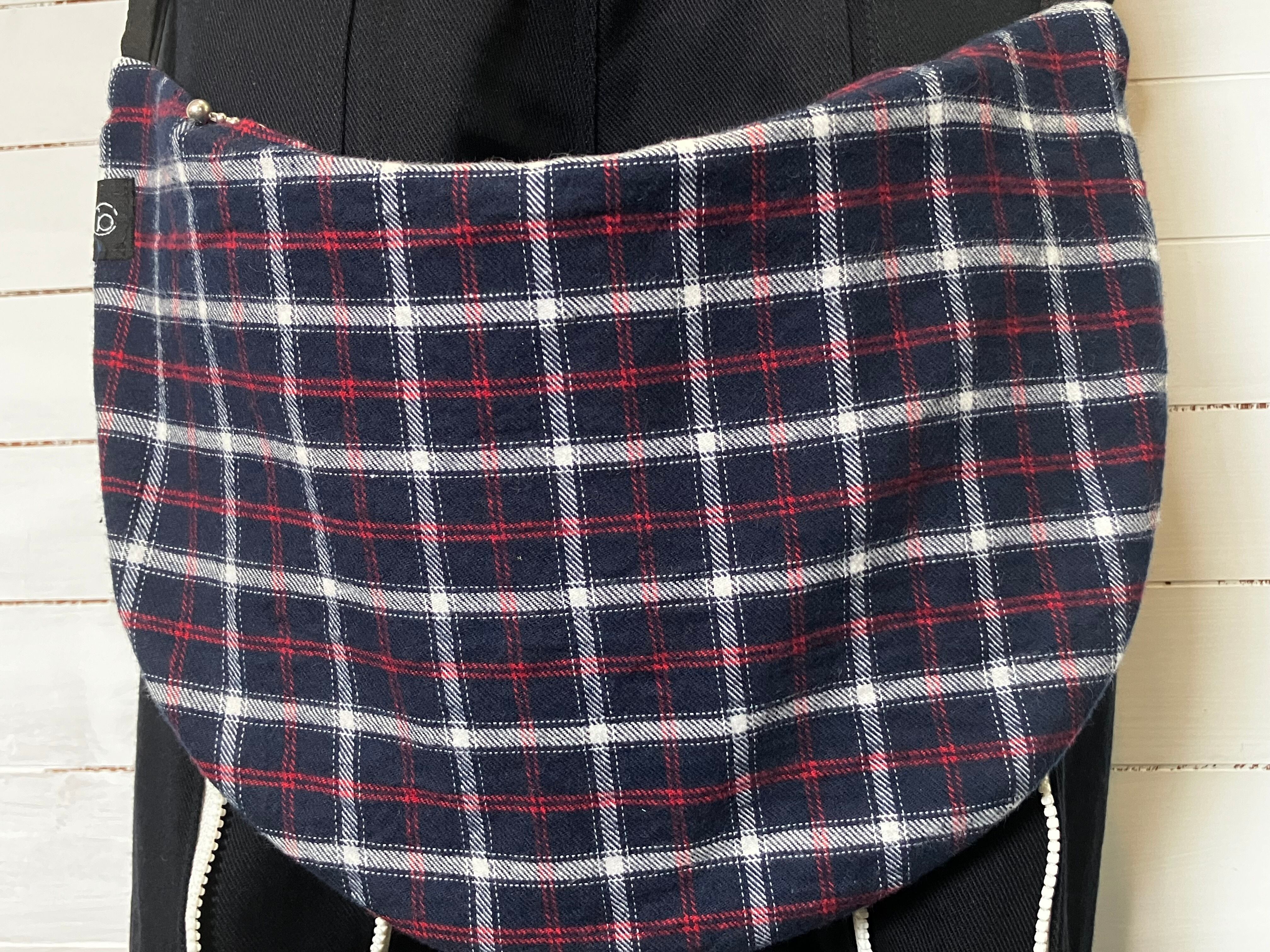 バムフラップ 紺白赤チェック けつあて しり当てヒップバッグ バムフラップ