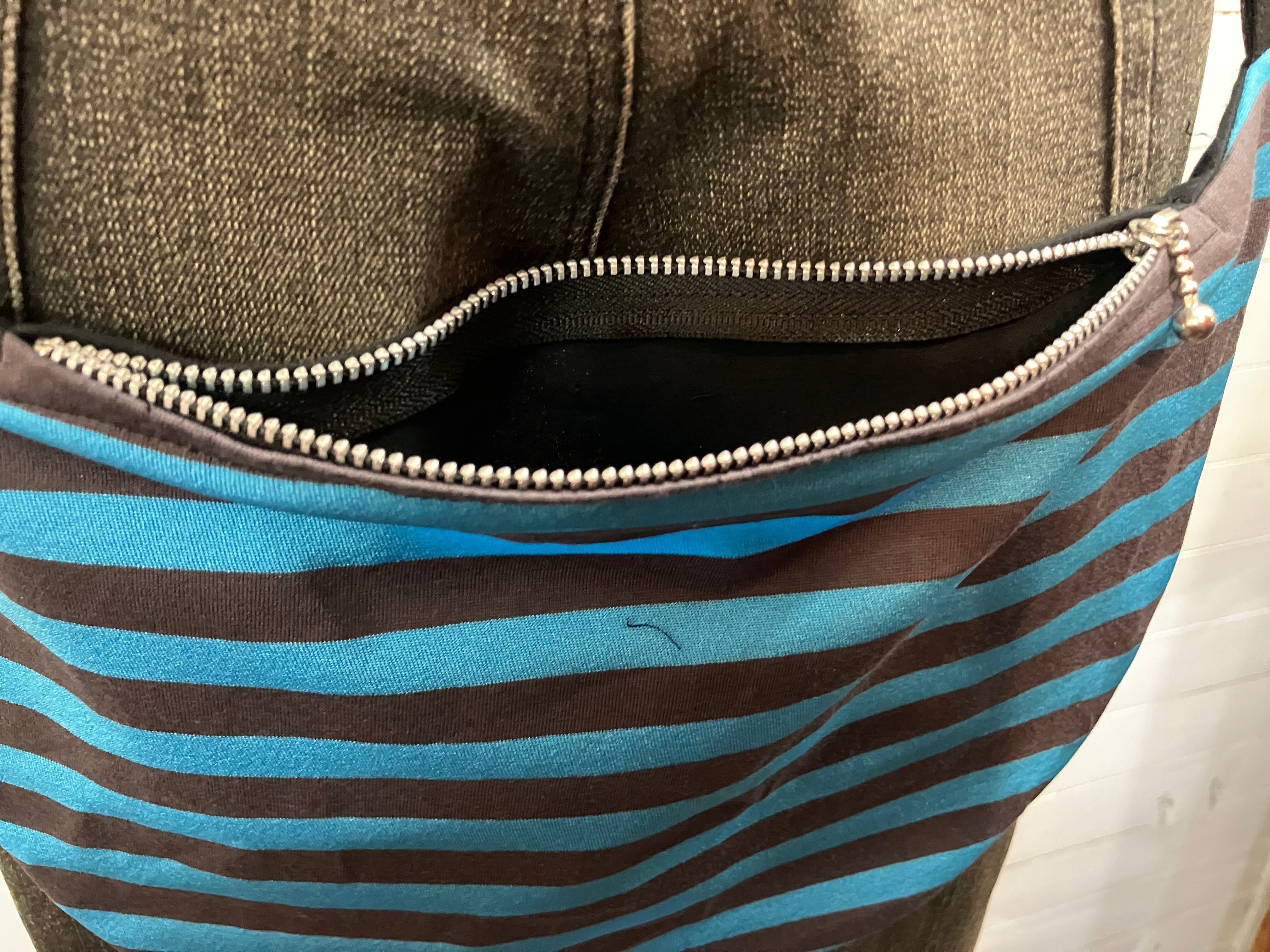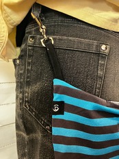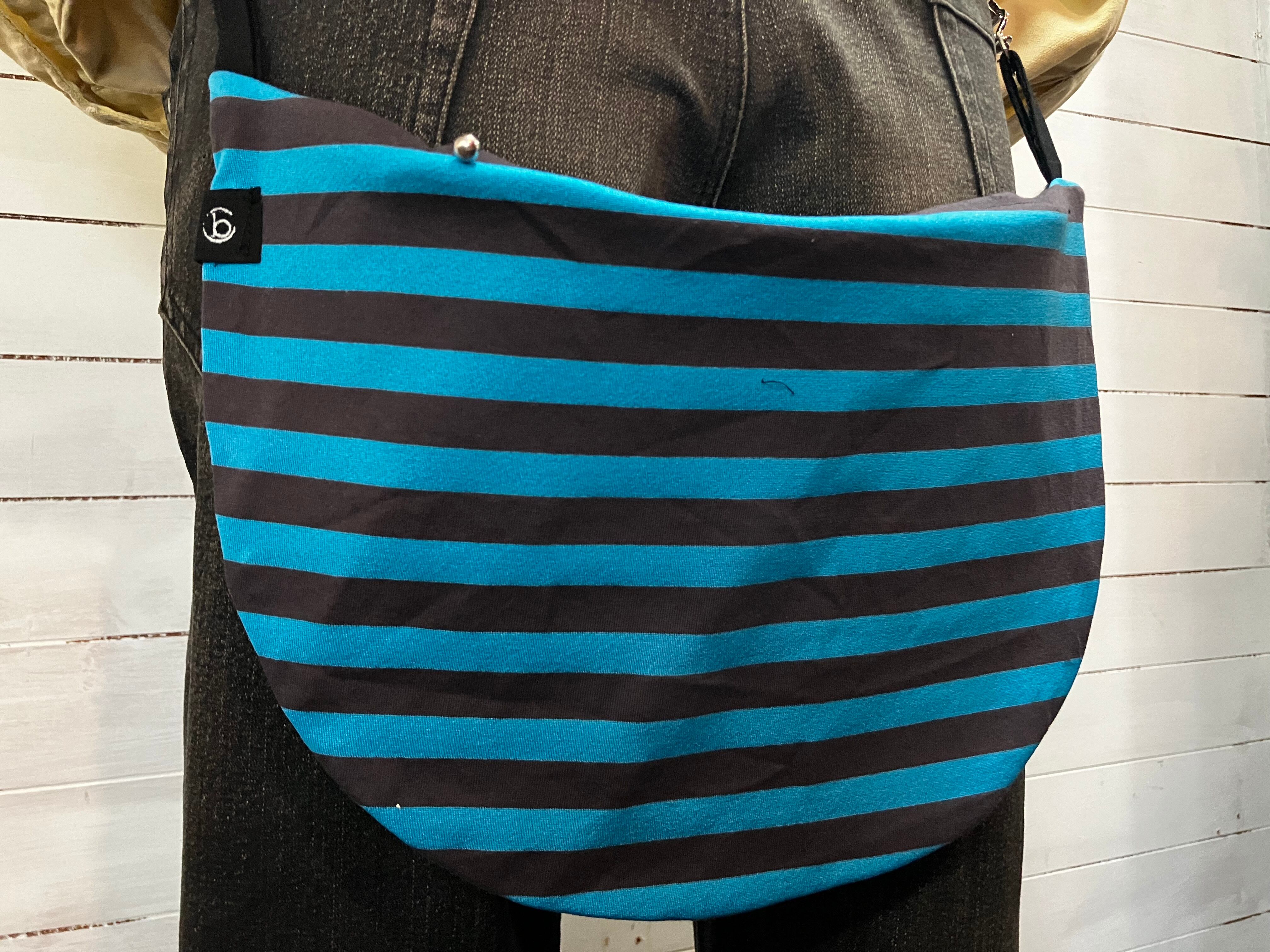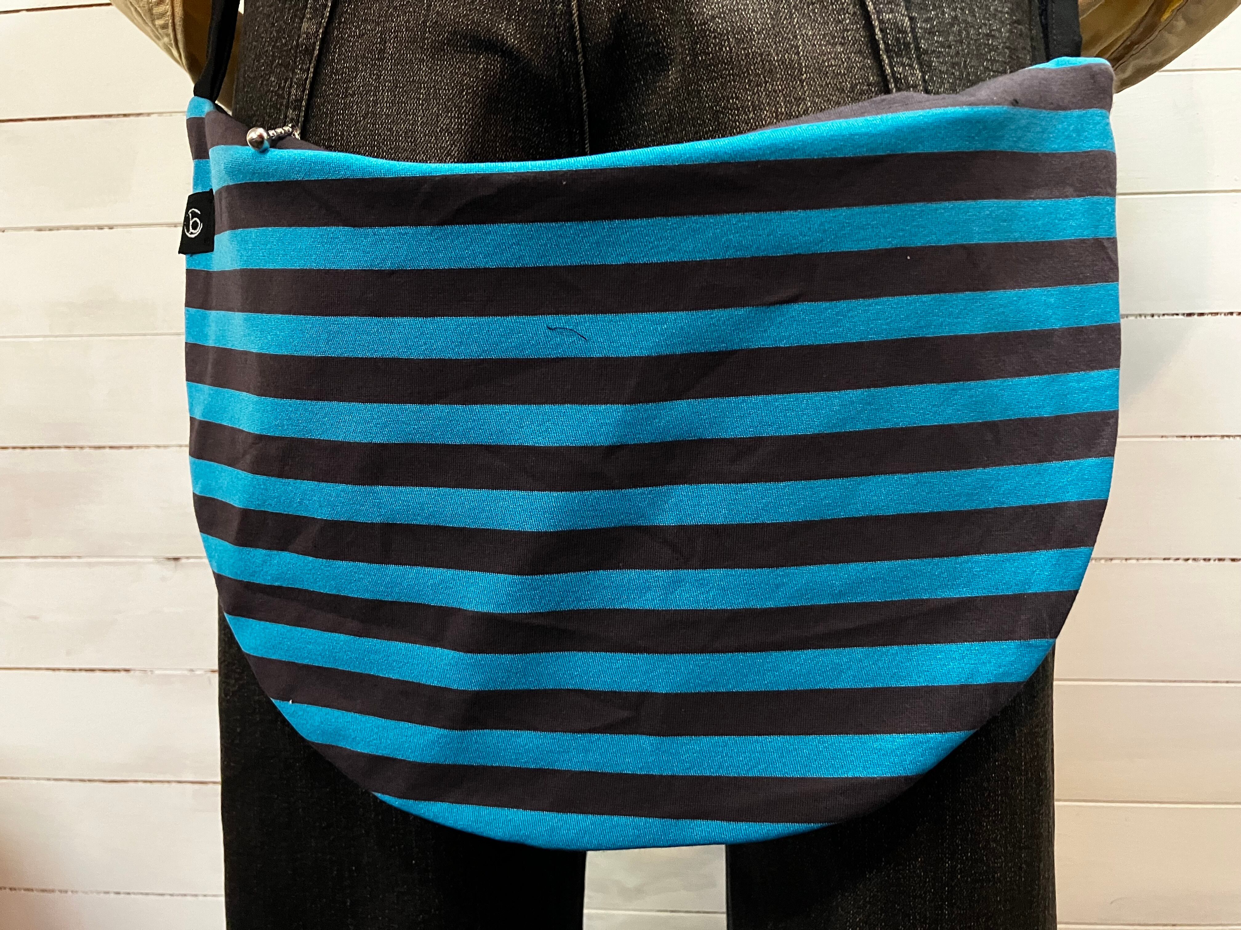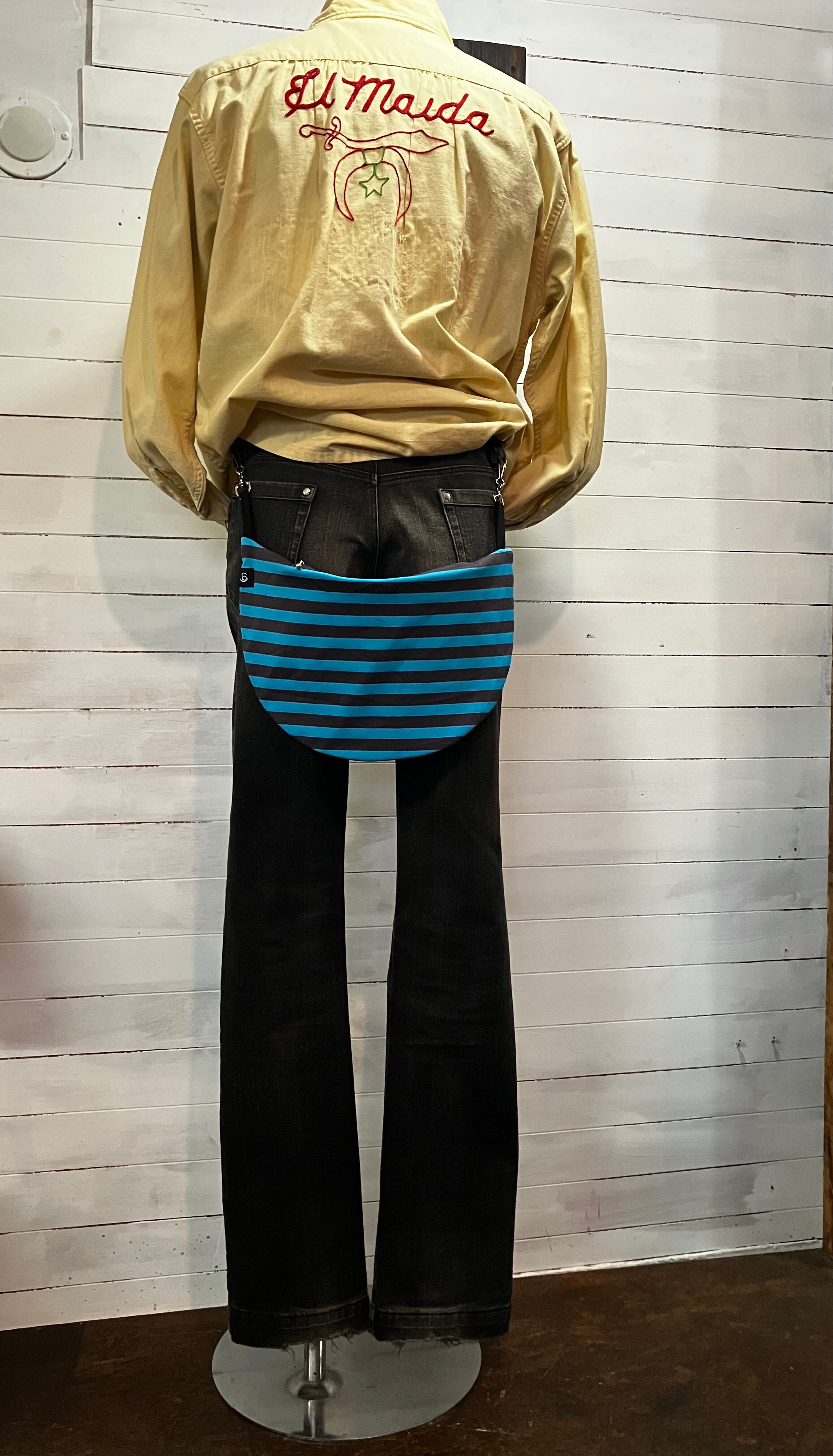 バムフラップ 青グレーボーダー けつあて しり当てヒップバッグ バムフラップ