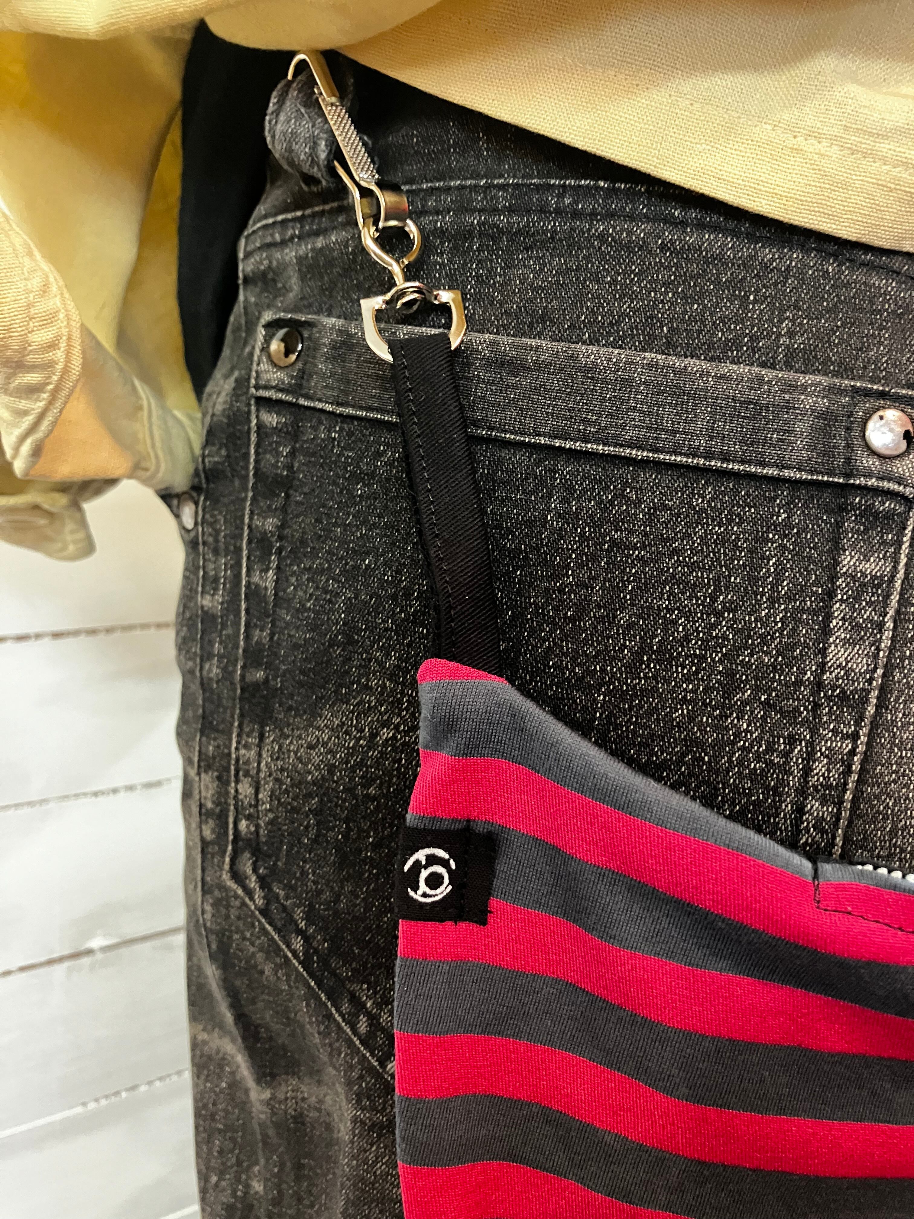 ベルトループに金具でつけるのでサイドに持ってくることも可能です。