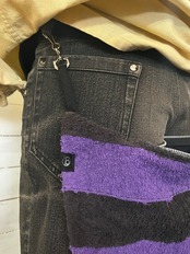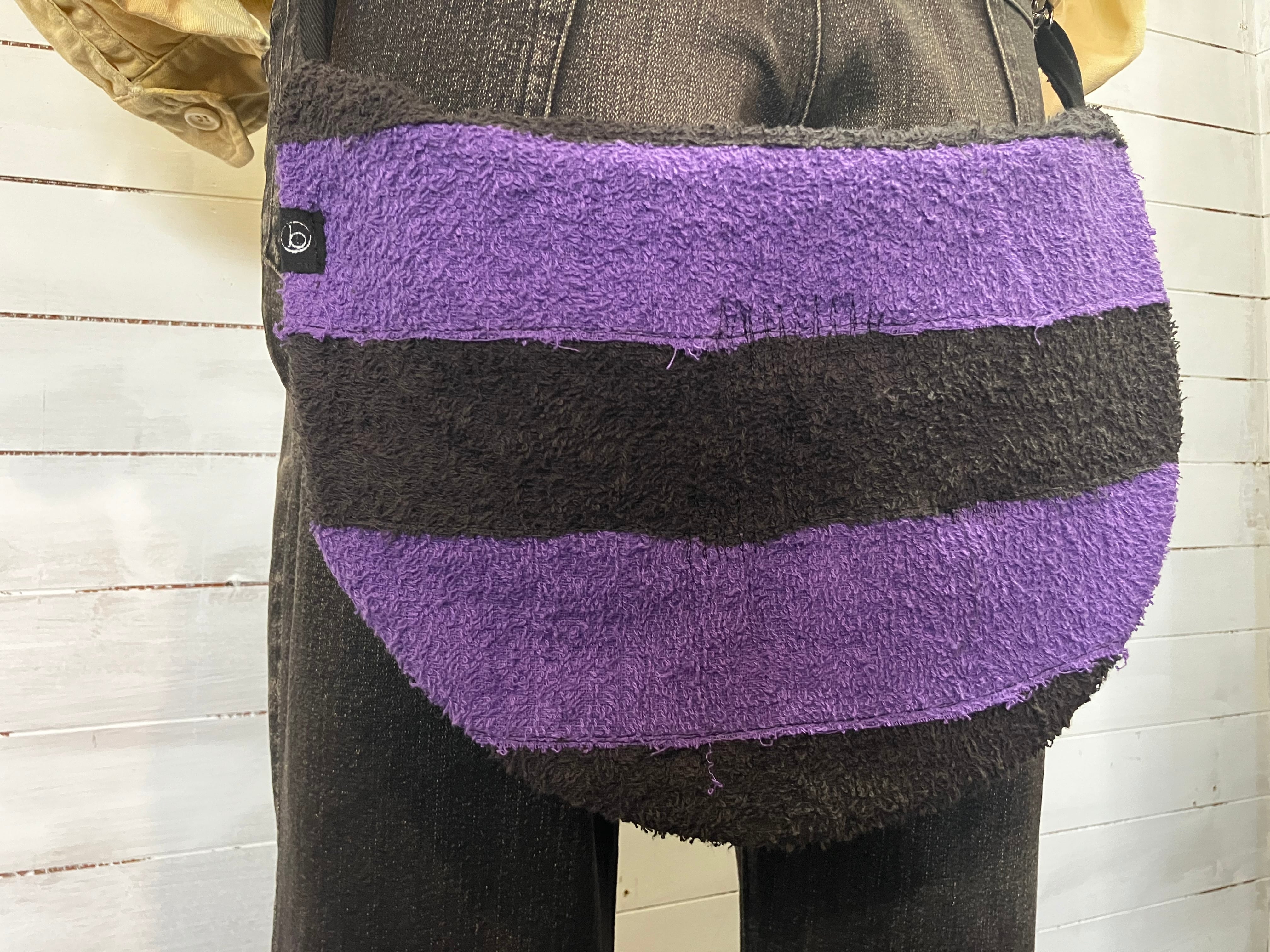 バムフラップ 自作黒紫ボーダータオル けつあて しり当てヒップバッグ バムフラップ
