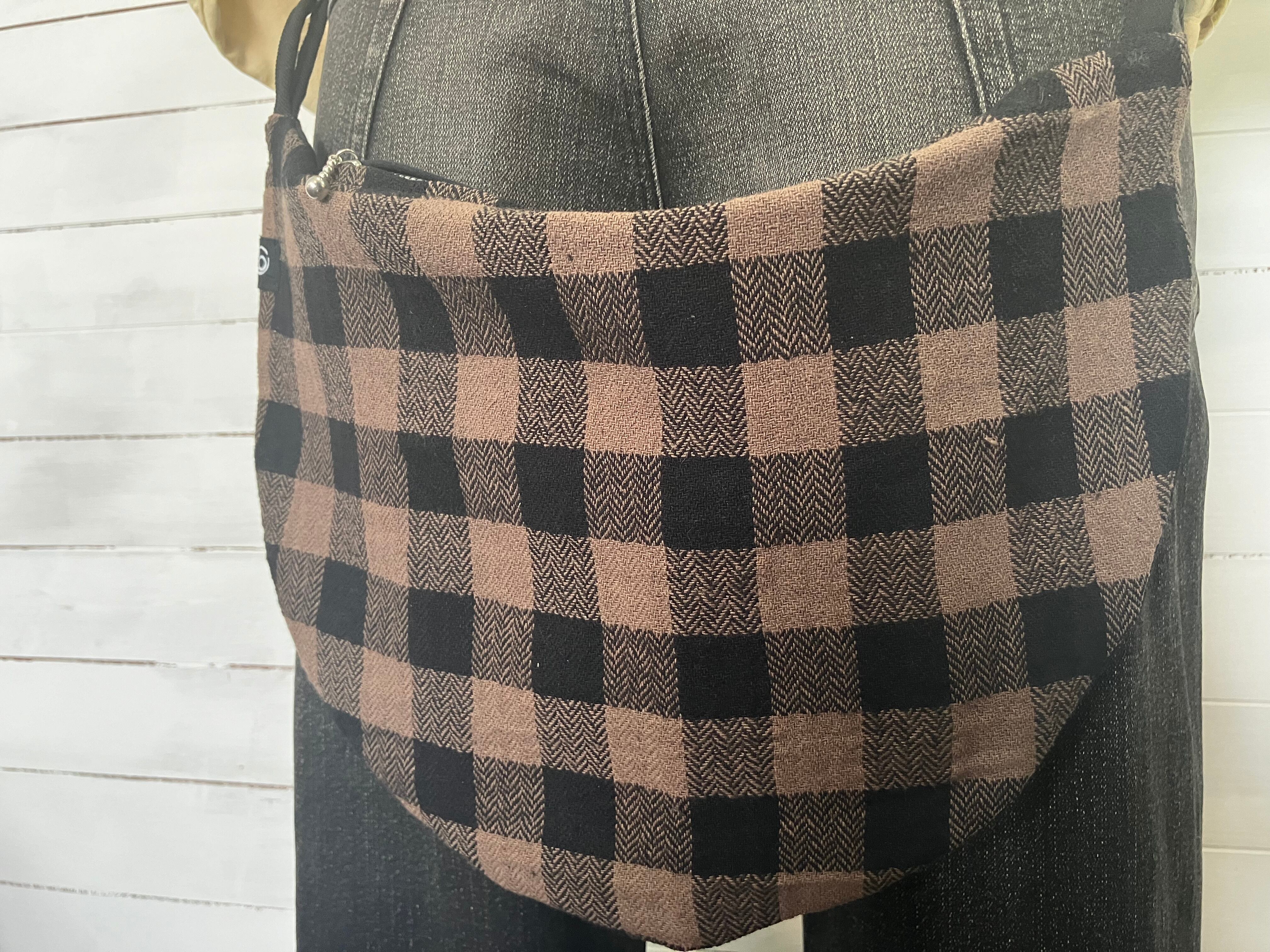 茶系ブロックチェックバムフラップです!